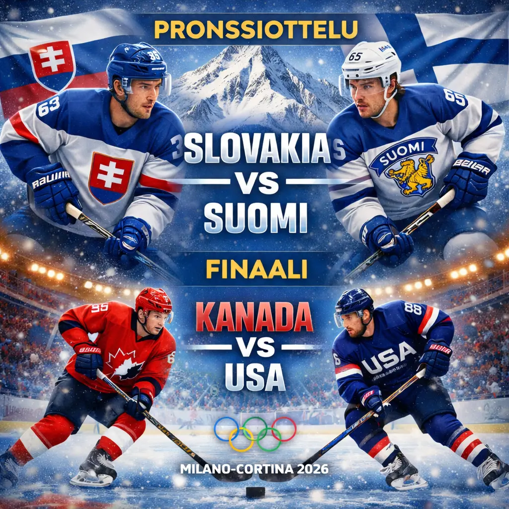 Jääkiekon olympialaiset 2026 huipentuu viikonloppuna, kun edessä on mitalipelit. Ensin lauantaina 21. helmikuuta Slovakia ja Suomi iskee yhteen pronssiottelussa klo 21:40 alkaen ja turnaus huipentuu sunnuntaina 22. helmikuuta pelattavaan olympiafinaaliin Kanada – USA. Finaalin osalta kiekko tippuu jäähän sunnuntaina 15:10. Mitalipelit pelataan Milanon Santa Giulia Arenalla.