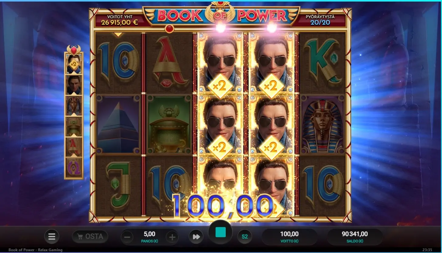 Tällanen rulla koitti jotain maksella vielä päälle. Gämpläsin jotkut powerspinnit ja aika pian tuli kuvioksi tuo paras kuvio, joka maksoi vielä 2x enemmän kuin normaalisti. Pari nelosta ja kolmosia, täysruutu ois ilmeisesti maksellut jo oikeastikin jotain.