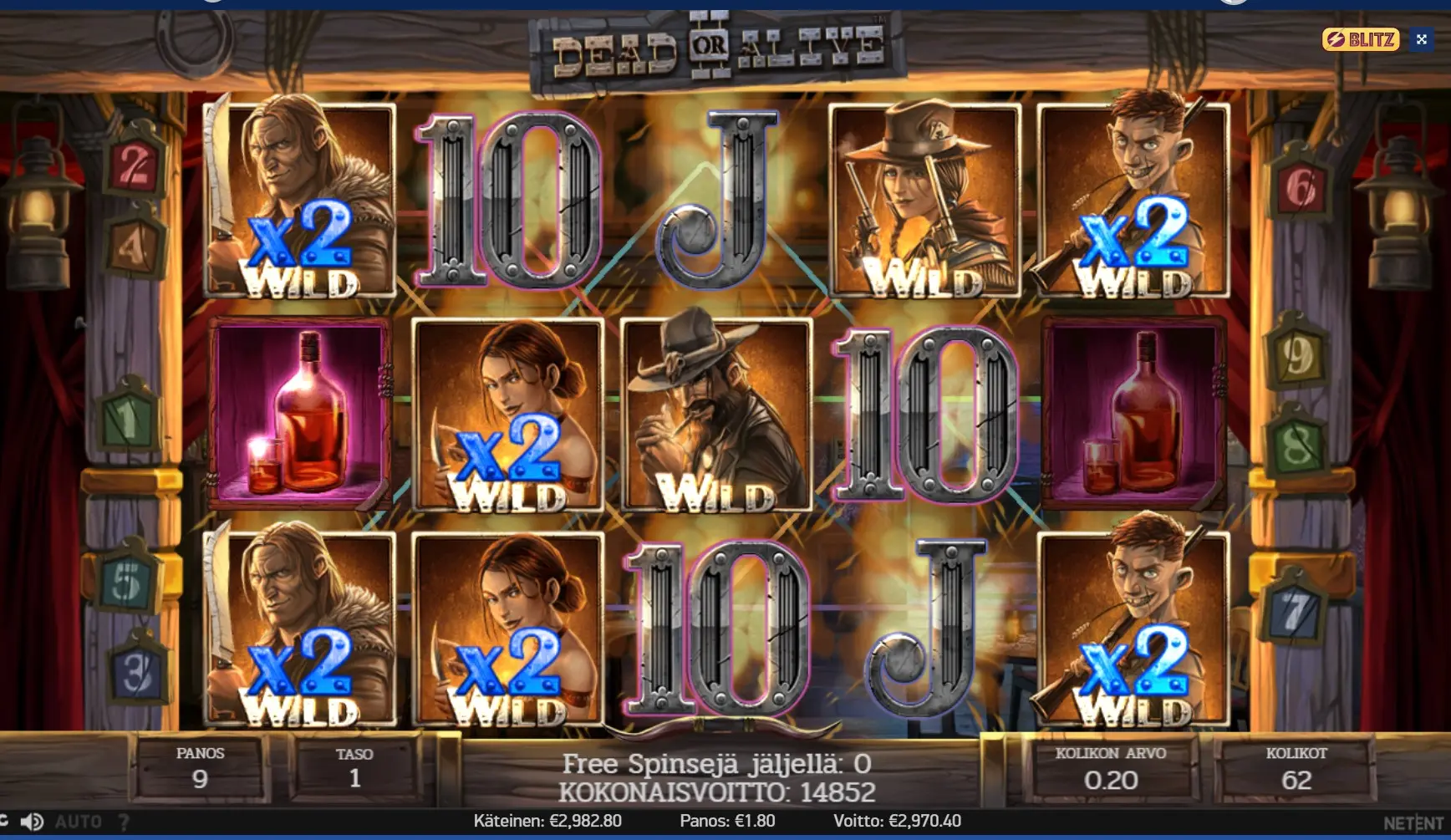 Ei riittäny 8 spinniä kahteen paikkaan. Onneks kerran tuli tähti, joka makso 2/3 osaa koko bonarista.