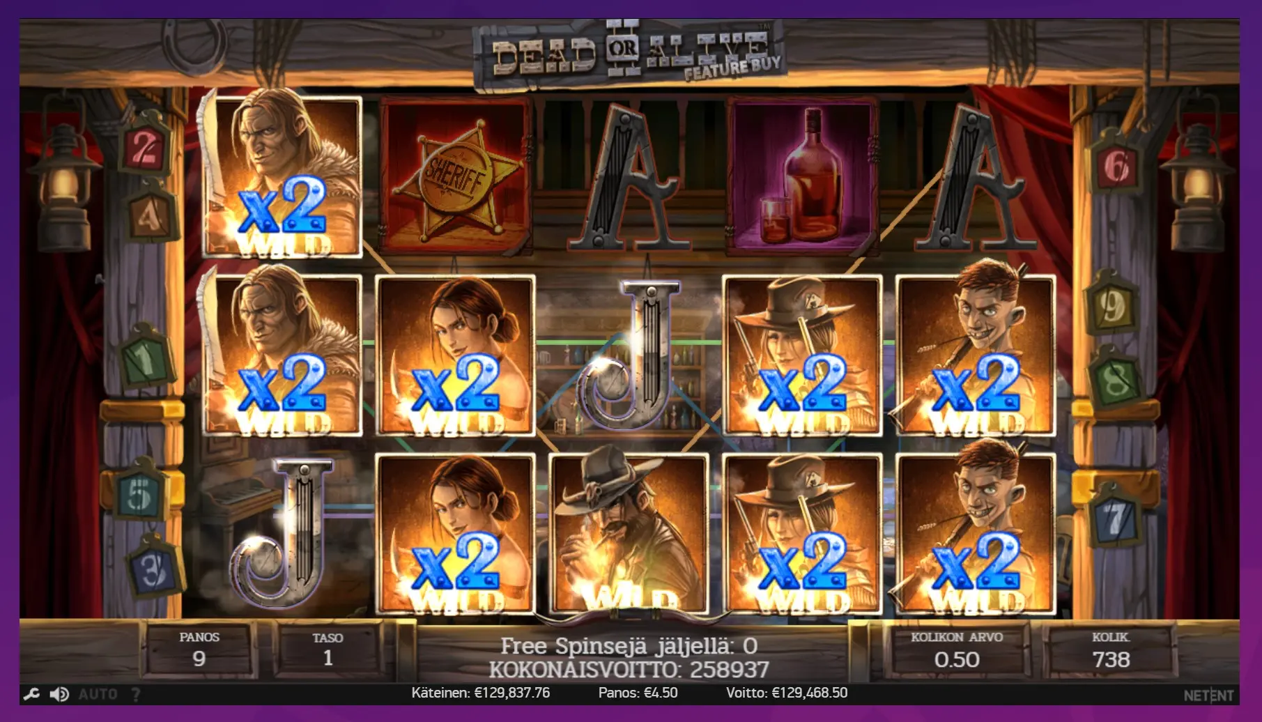 Lisäspinnien ekalla pyöräytyksellä puotti rahalinjan ja tämän setupin. Enempää ei wildeja irronnu tällä kertaa, mutta kerkeshän tuo 8 spinnillä tämäkin pöytä jo ihan järkevästi maksaa