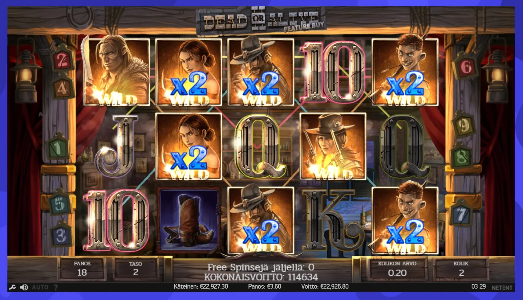 Kahdella eka spinnillä tuli 4 wildia, sen jälkeen suti tyhjää kunnes viimisellä spinnillä puotti 2 wildia wildlineksi. 2 viimistä spinniä sai jännittää tupla-/triplalineä.