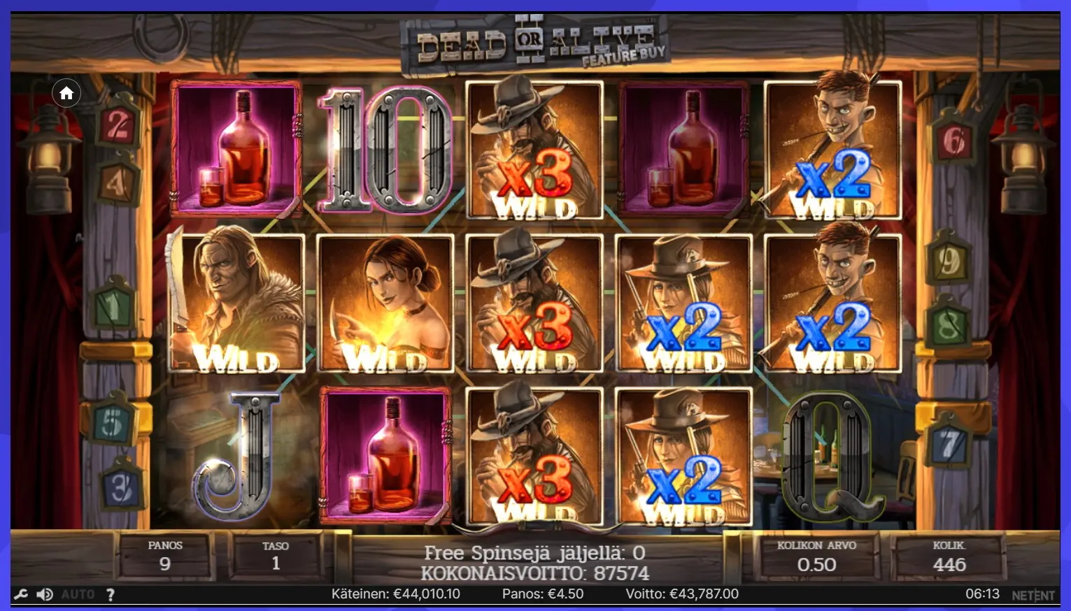 6 spinniä rahalinjaa. Vasta loppua kohden alkoi lisäwildeja tippumaan