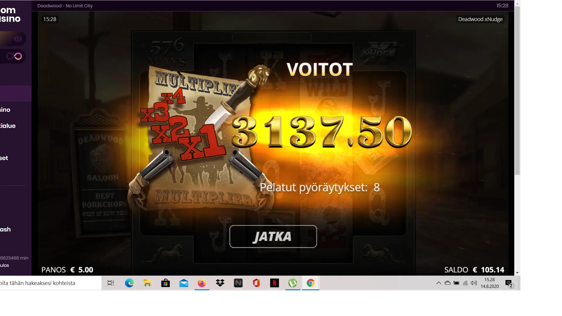 Aika ärhäkkä hitti! Deadwoodiin ei oo tullu pelailtua ku ilmaiskierroksia