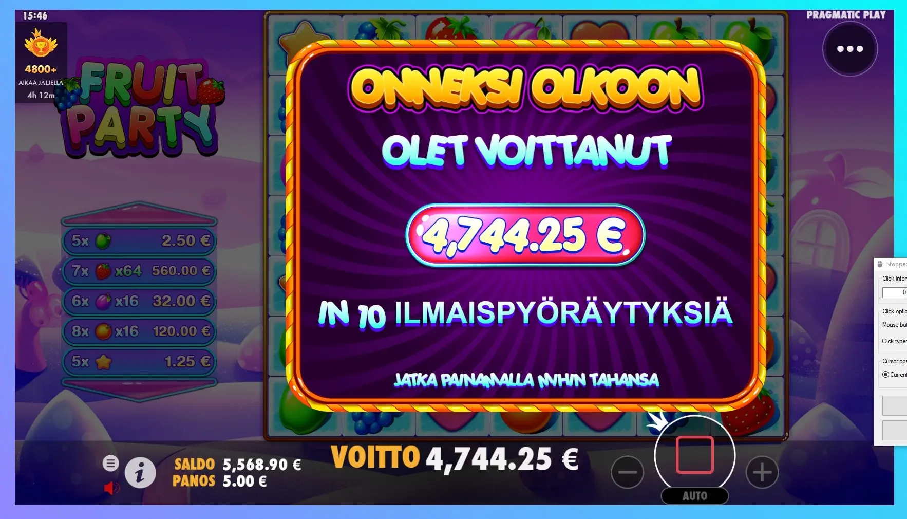 Jotain siellä bonarissa connectas isompaan osumaan, en kiinnittäny huomiota kun oli aika pieni könttä mutta tais olla 4xkertoimia sit useampi