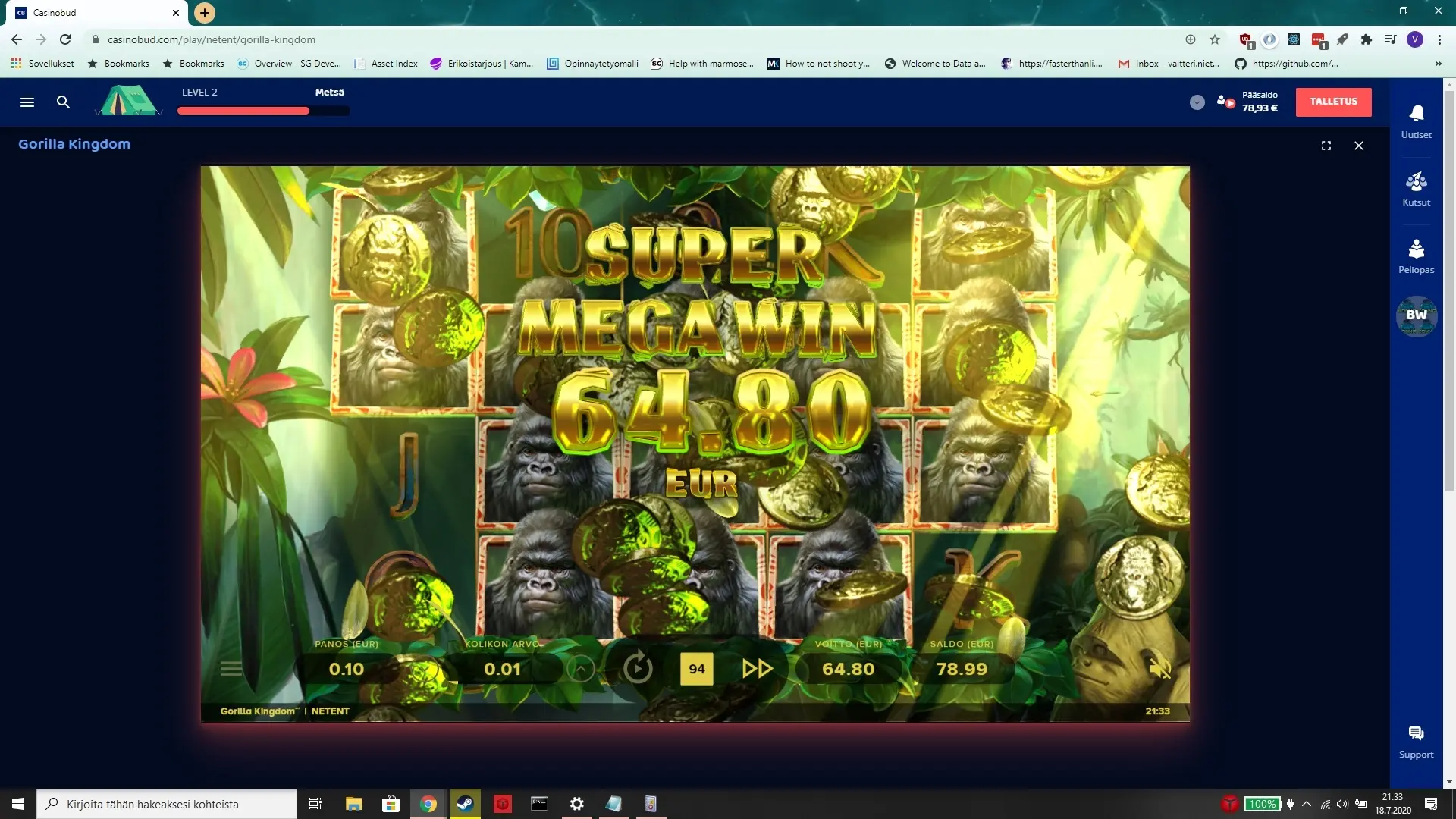 Pelailin ihan pikkupanoksella casinobudilla ja osu tommonen