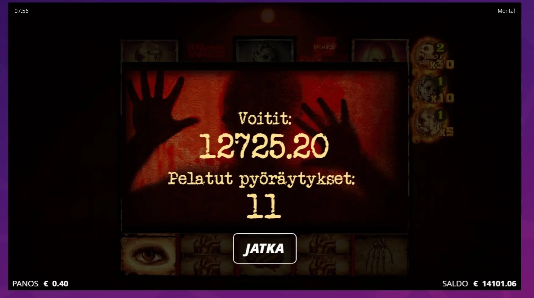 30x kertoimet vierekkäin ja lisää samaa kuviota päätyyn asti. Aattelin että joku parin kilon voitto, mutta yllättikin ihan järkevällä voitolla