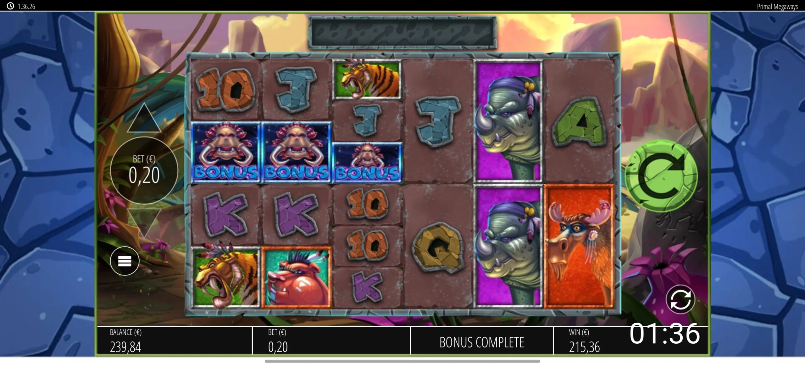 Ensin osui 2rullaa mammutteja ja 3 wildia putkeen, sitten 4 wildia ja ässät päätyyn, molemmat about 500x