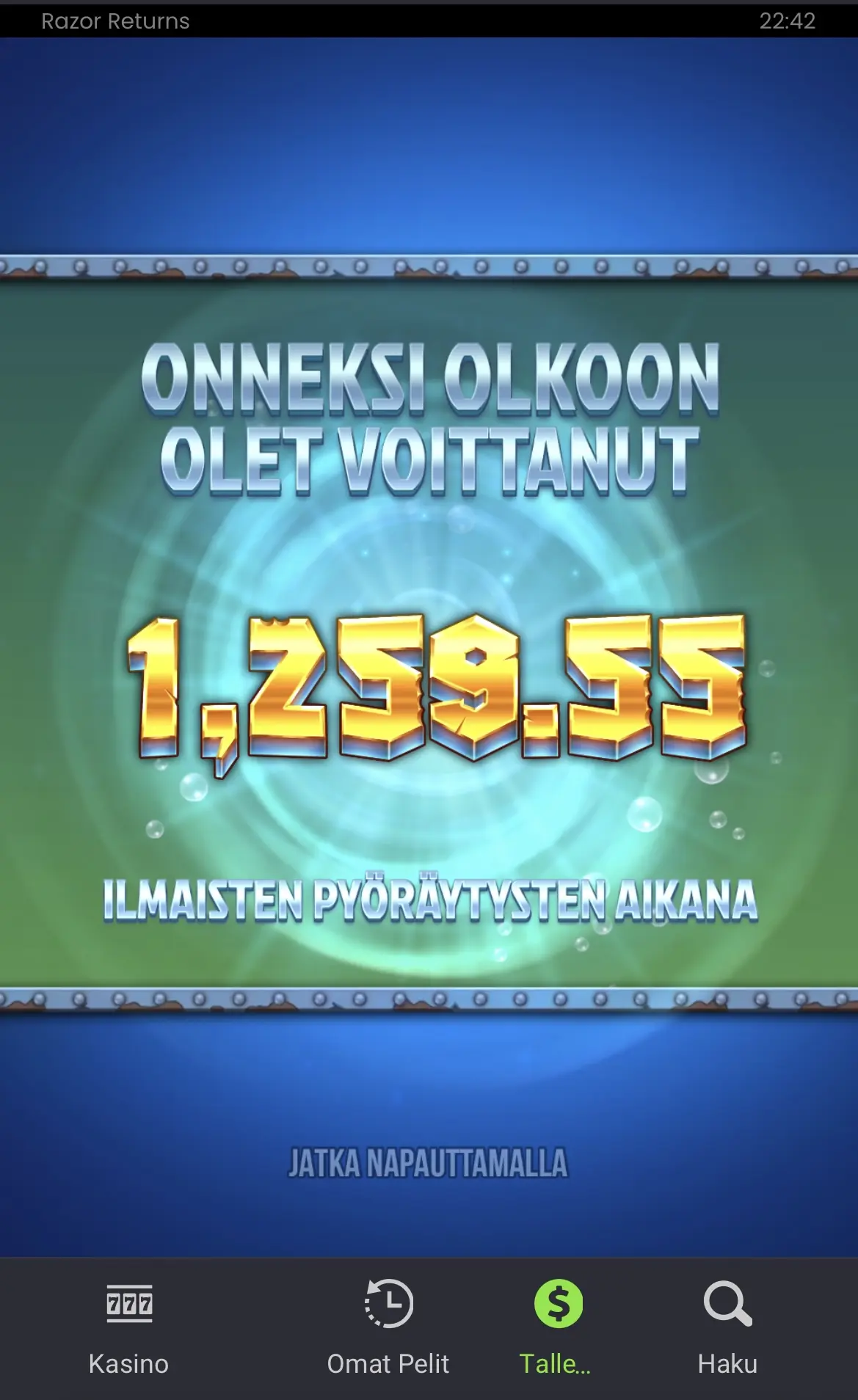 Coolbet ajatteli, että tämä kaveri on hävinnyt aivan liikaa tennikseen, joten sitten uusi Razor Returns innostui onneksi maksamaan vähä . Kerroin nousi noin 40x mutta kolikot oli niukassa, tuossa vaiheessa oikeastaan mikä vaan antoi jo mukavia napsuja.