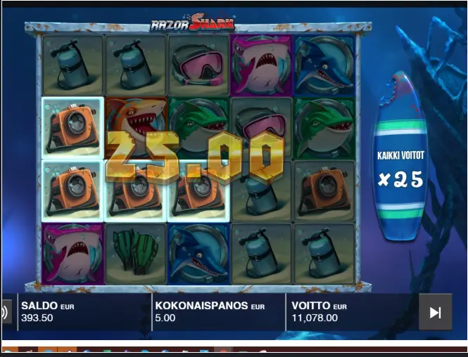 Aika vaatimattomilla kuvioilla heitti kyllä isoa hittiä kun kerroin kasvoi. Pari kertaa tuli kultahait, mutta kolikot jäi pieniks huippukertoimen ollessa päällä, mutta toiset kultahait nosti sentään huipputilannetta kolme pykälää ylöspäin, ja siihen iski sitten vielä vierelle kolmannet levät ja isoin yksittäinen spinni tais olla tämä, josta tuli 3,9k ja risat https://i.gyazo.com/eebe7e7aba22a46c44c455eda5e09b12.png