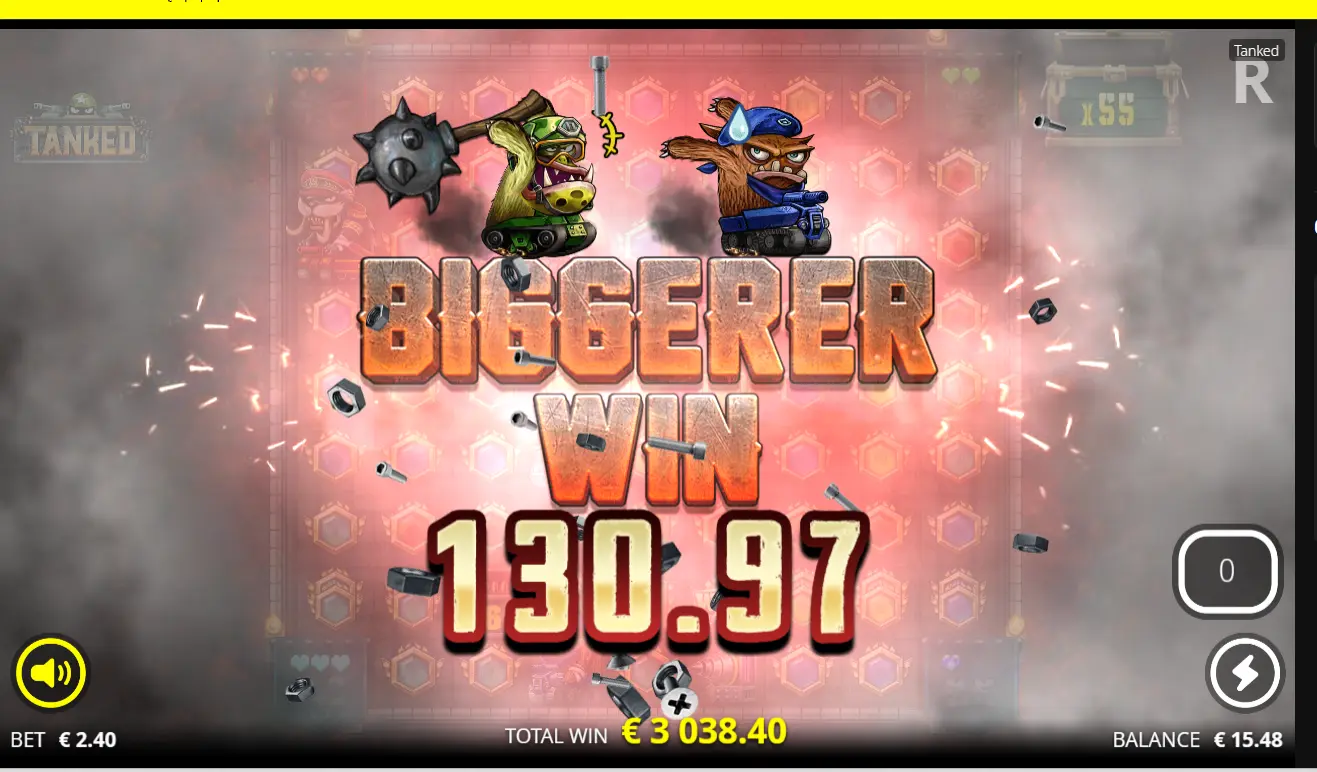 Komee voitto! Toi on kyllä yks erikoisimpia slotteja, nähnyt jonkun replayn missä tyyliin 20 minuuttia pudotti yhteen spottiin lisää niitä aseita ja kertoimia ja lopulta tyyliin 45 minuutin jälkeen bonus päättyi maksimi voittoon:D hauska yksityiskohta myös noi suomenkieliset höpinät :p