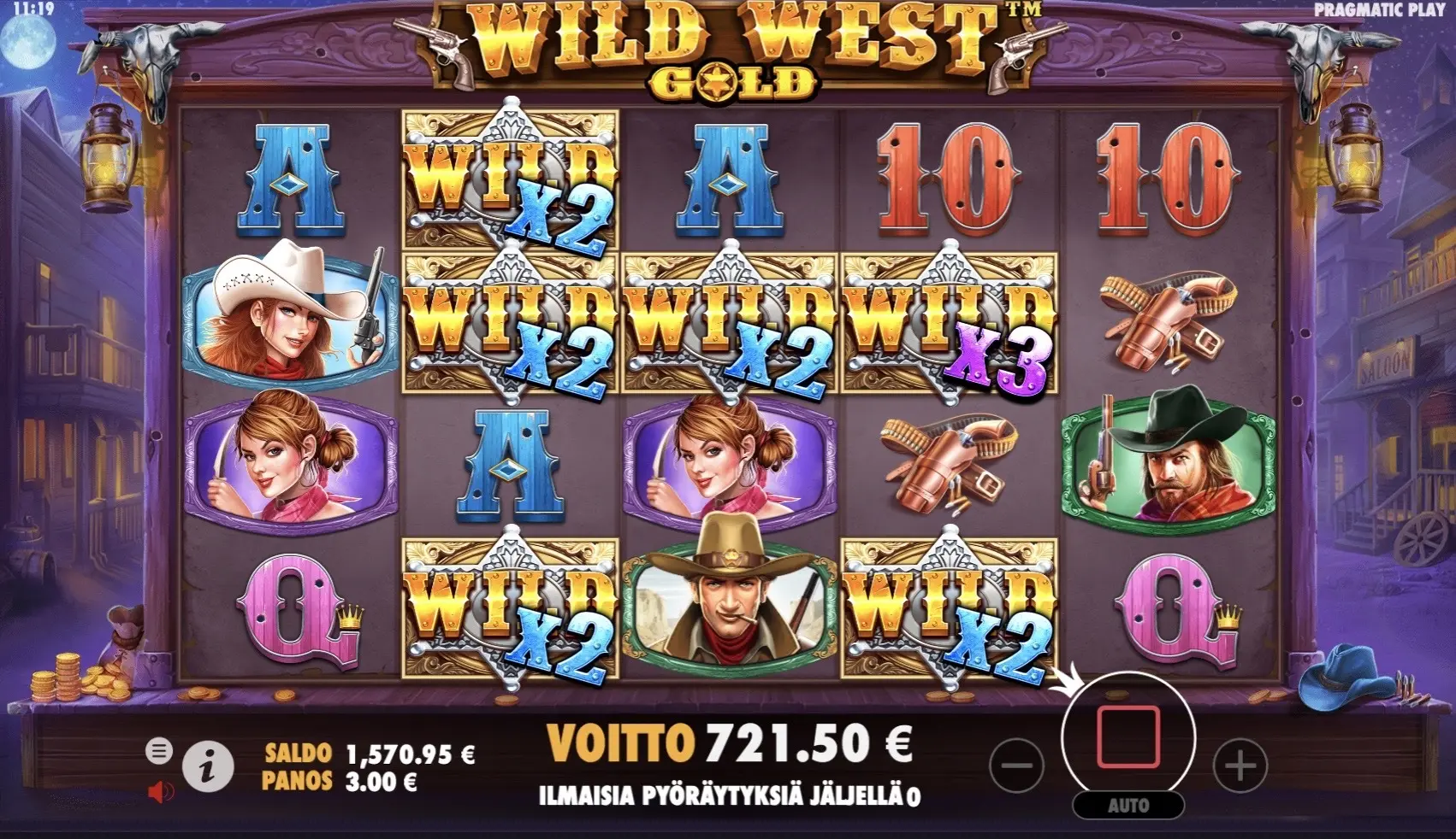 Nämäkin wildit oli tässä joku 8 spinniä jopa mut ei antanut lisää. Kiva voitto silti ja hyvin meni tämä bonuskierrätys, oli wild westi ns KUUMANA